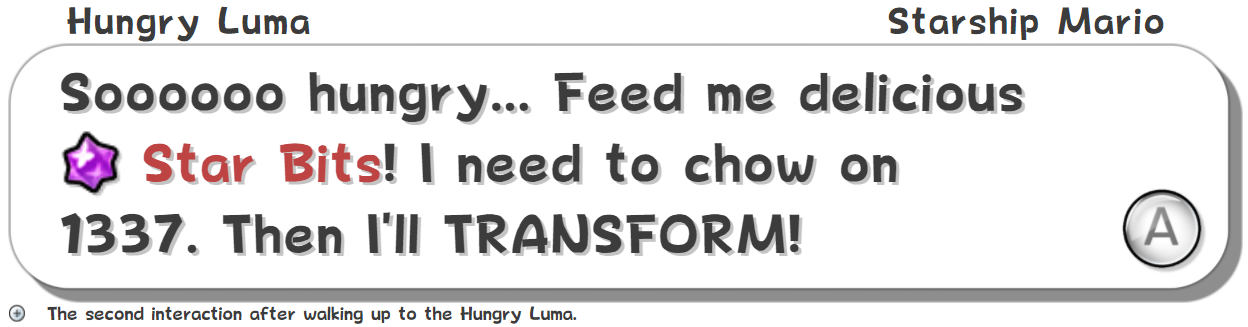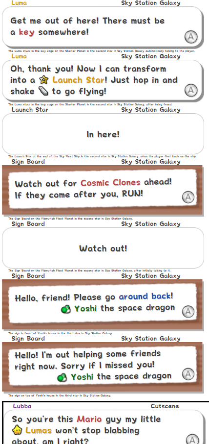 i've updated Peruse to add all text up until the first Hungry Luma on the World Map. more importantly, though, i've added links to every textbox (pretty similarly to how Kuribo64 does it, really) by clicking the + icon under a textbox. so now, you can be having a conversation with your friend about how Yoshi sometimes calls himself "Yoshi the space dragon", and can just directly link to it, rather than having to take a screenshot. or, you can just share the name of it: #HoleSphere3Zone-SignBoard004